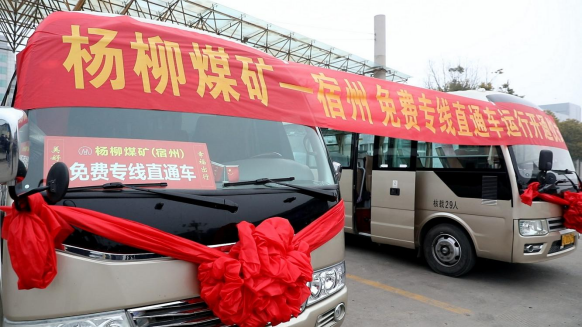 (2022年1月10日,楊柳礦開往宿州市的免費通勤車正式開通。)